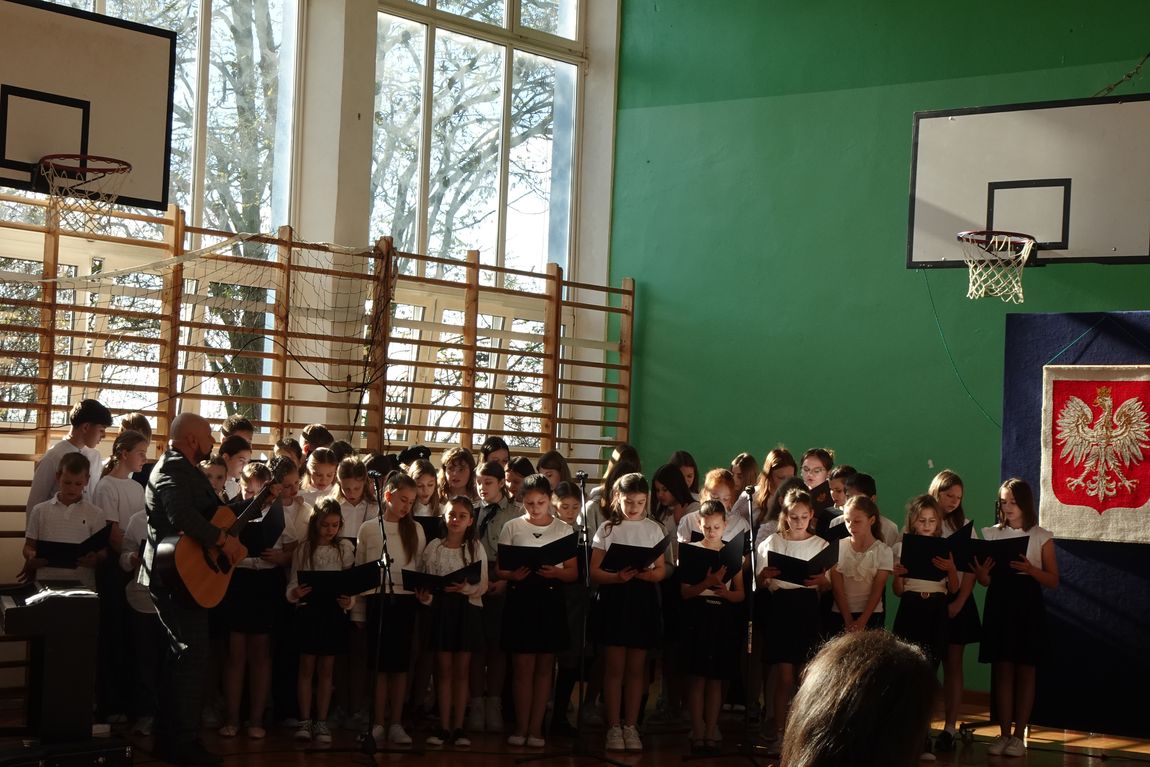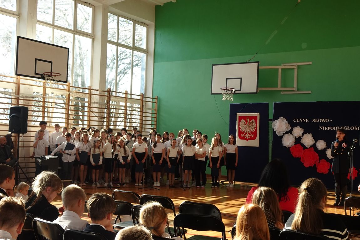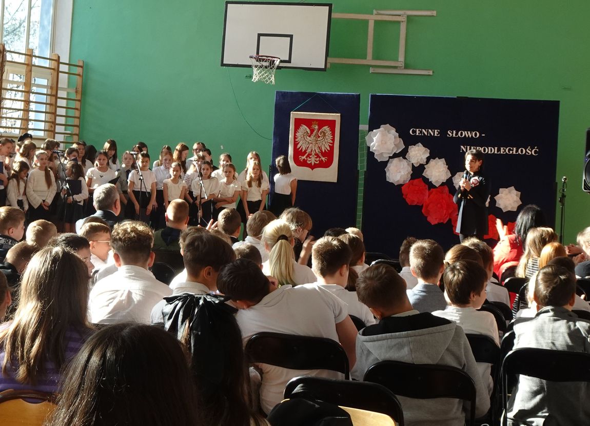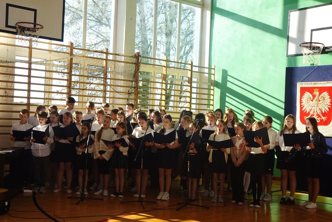 4 listopada społeczność szkolna zgromadzona w sali gimnastycznej obejrzała  program artystyczny o patriotycznym charakterze. Uczniowie przypomnieli drogę Polaków do wolności,  ich poświęcenie i odwagę. Nie zabrakło pięknych pieśni legionowych i patriotycznych w wykonaniu uczniów szkolnego chóru. Swoim zaangażowaniem i  postawą uczniowie sprawili, że akademia była wyjątkowa i niepowtarzalna. Była   również wspaniałą lekcją historii  i patriotyzmu.
