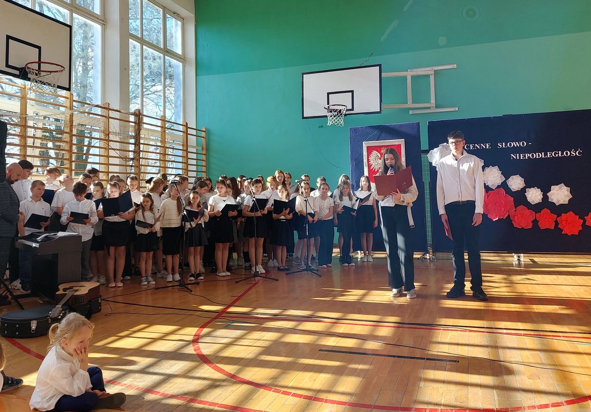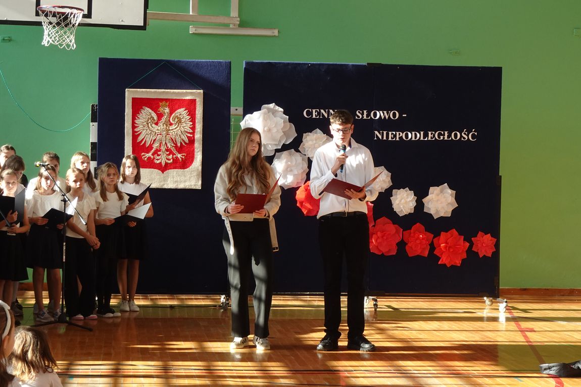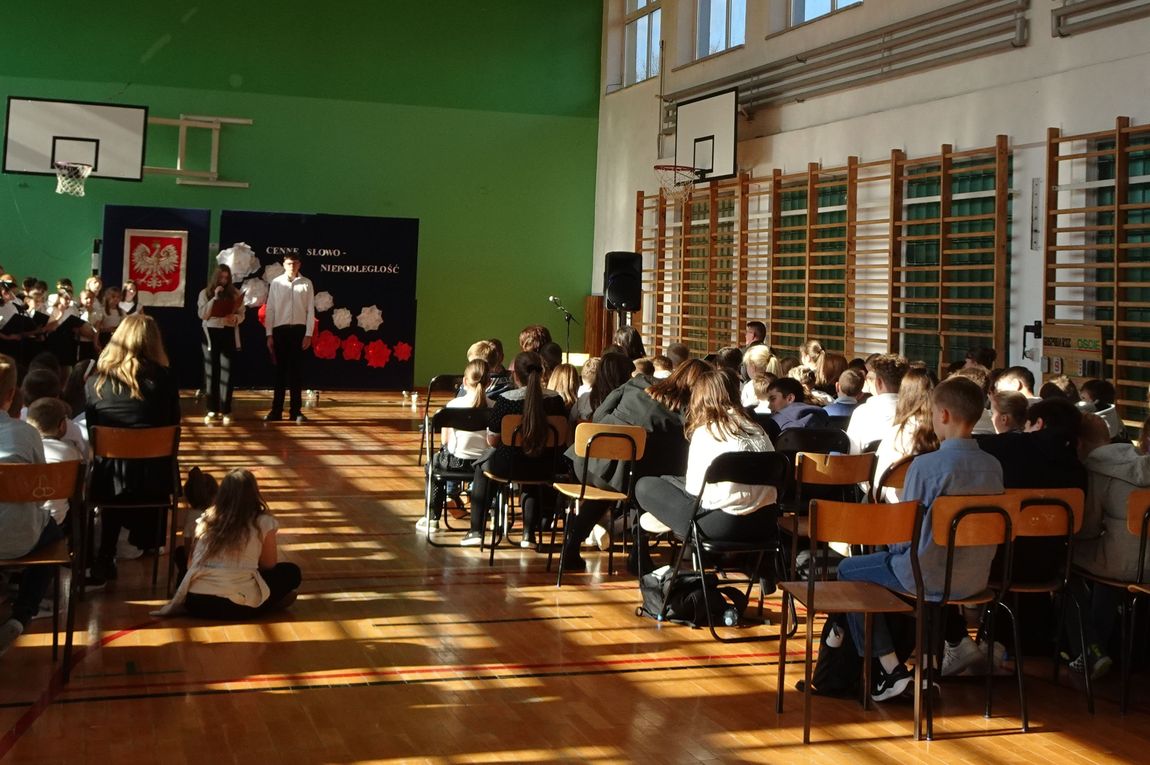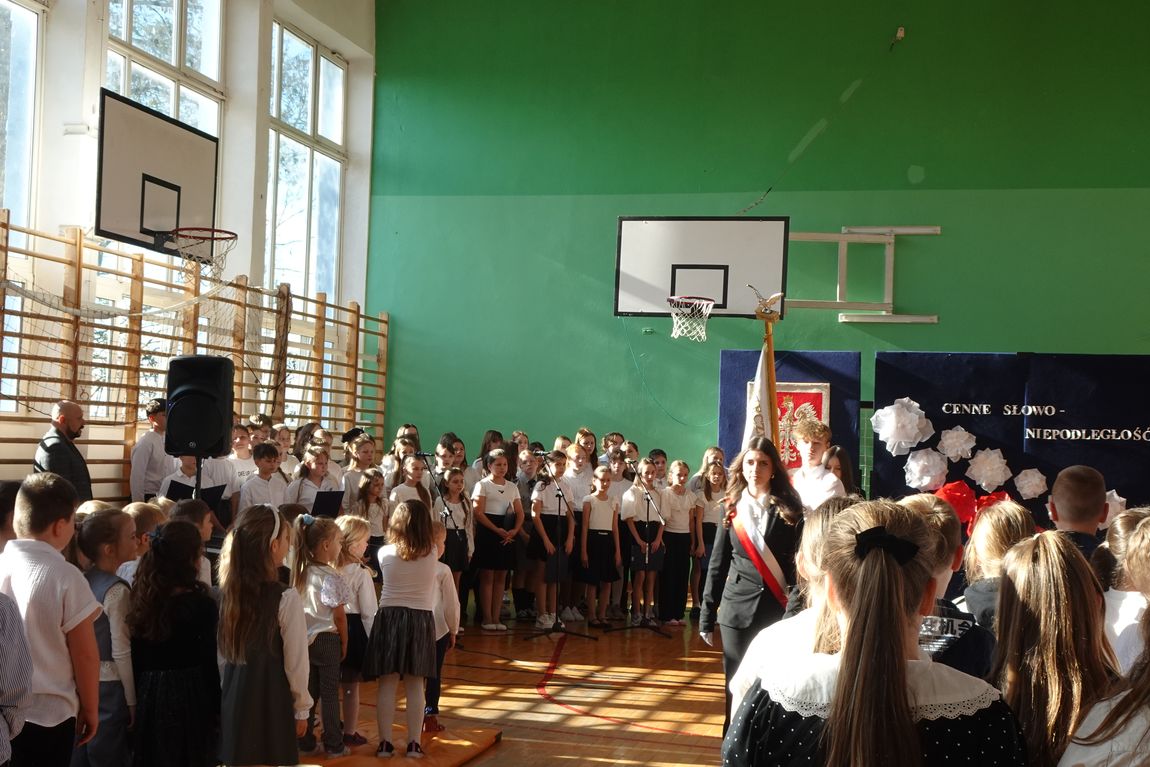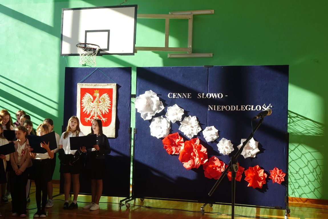 4 listopada społeczność szkolna zgromadzona w sali gimnastycznej obejrzała  program artystyczny o patriotycznym charakterze. Uczniowie przypomnieli drogę Polaków do wolności,  ich poświęcenie i odwagę. Nie zabrakło pięknych pieśni legionowych i patriotycznych w wykonaniu uczniów szkolnego chóru. Swoim zaangażowaniem i  postawą uczniowie sprawili, że akademia była wyjątkowa i niepowtarzalna. Była   również wspaniałą lekcją historii  i patriotyzmu.