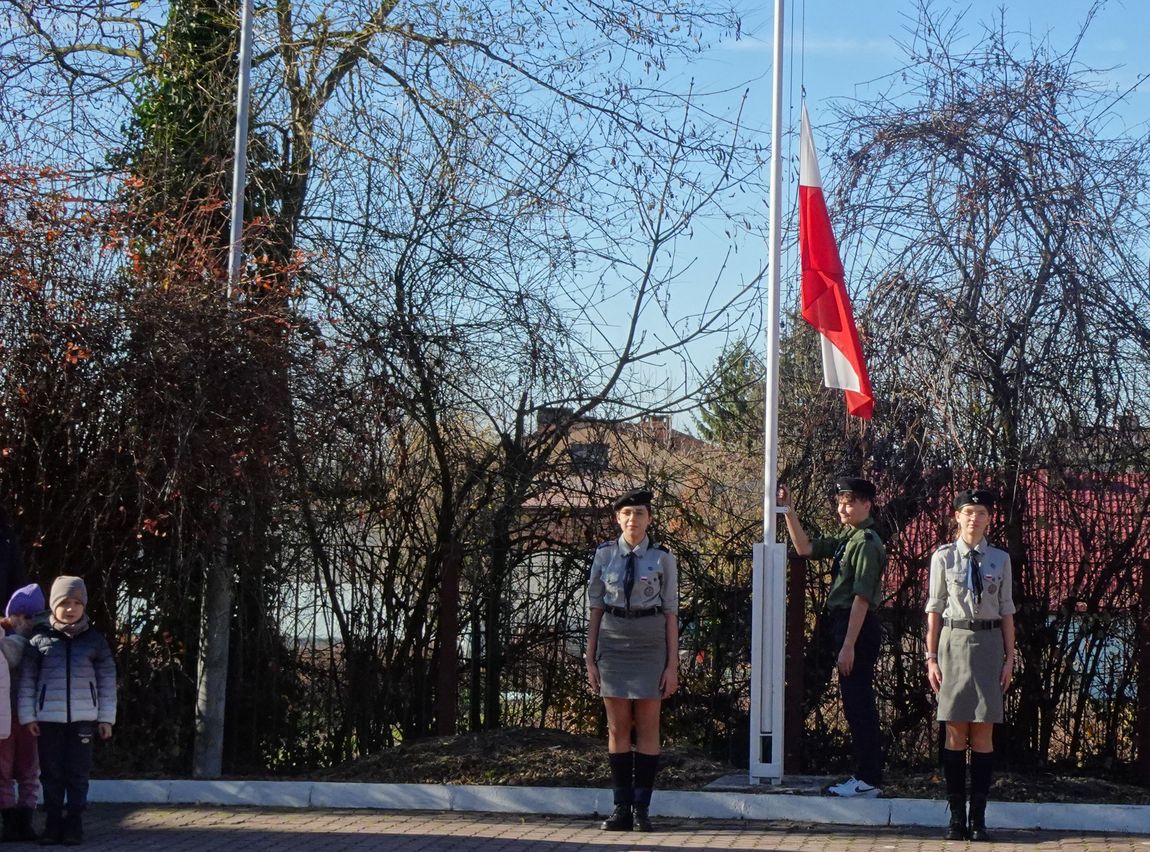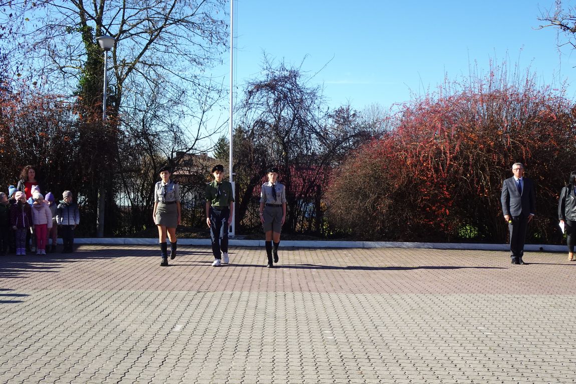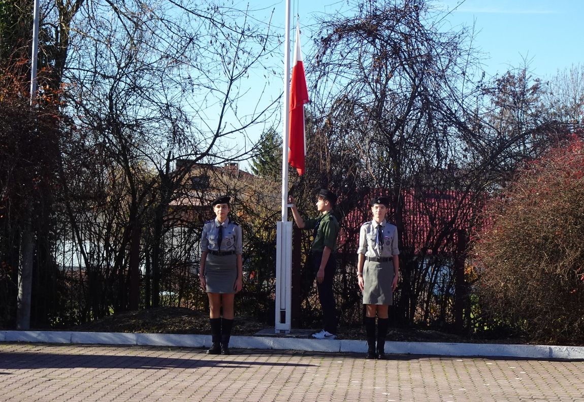 7 listopada o godz. 11.11 został odśpiewany Hymn narodowy. Na maszt przed szkołą, harcerze wciągnęli flagę Polski. Tym podniosłym wydarzeniem oddaliśmy hołd oraz wyraz pamięci o tych wszystkich, dzięki którym żyjemy dzisiaj w wolnej Polsce. (A.I.)