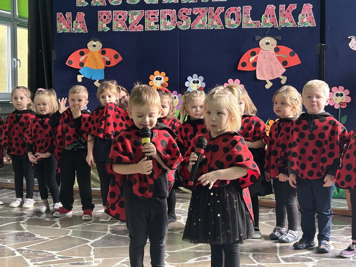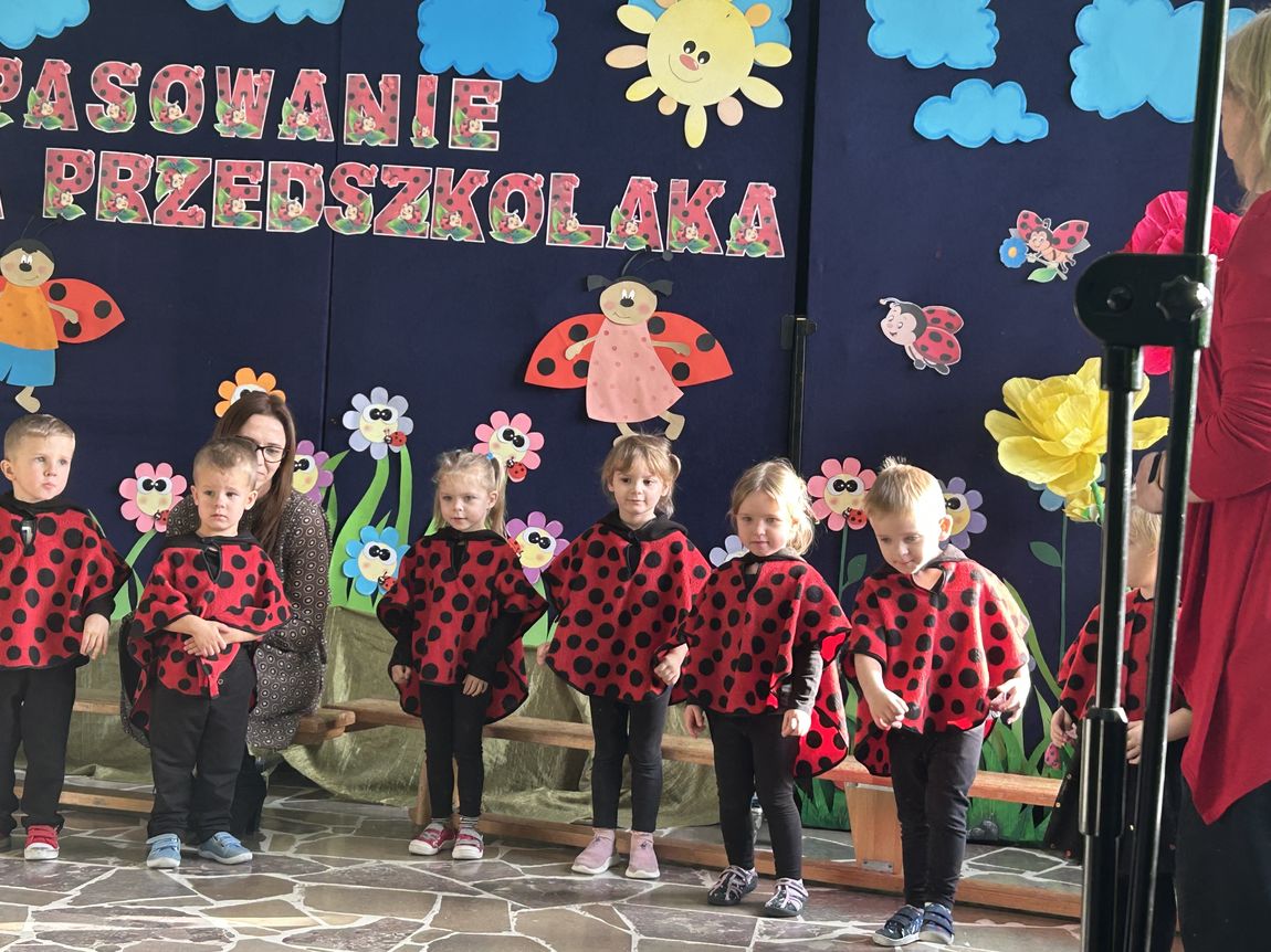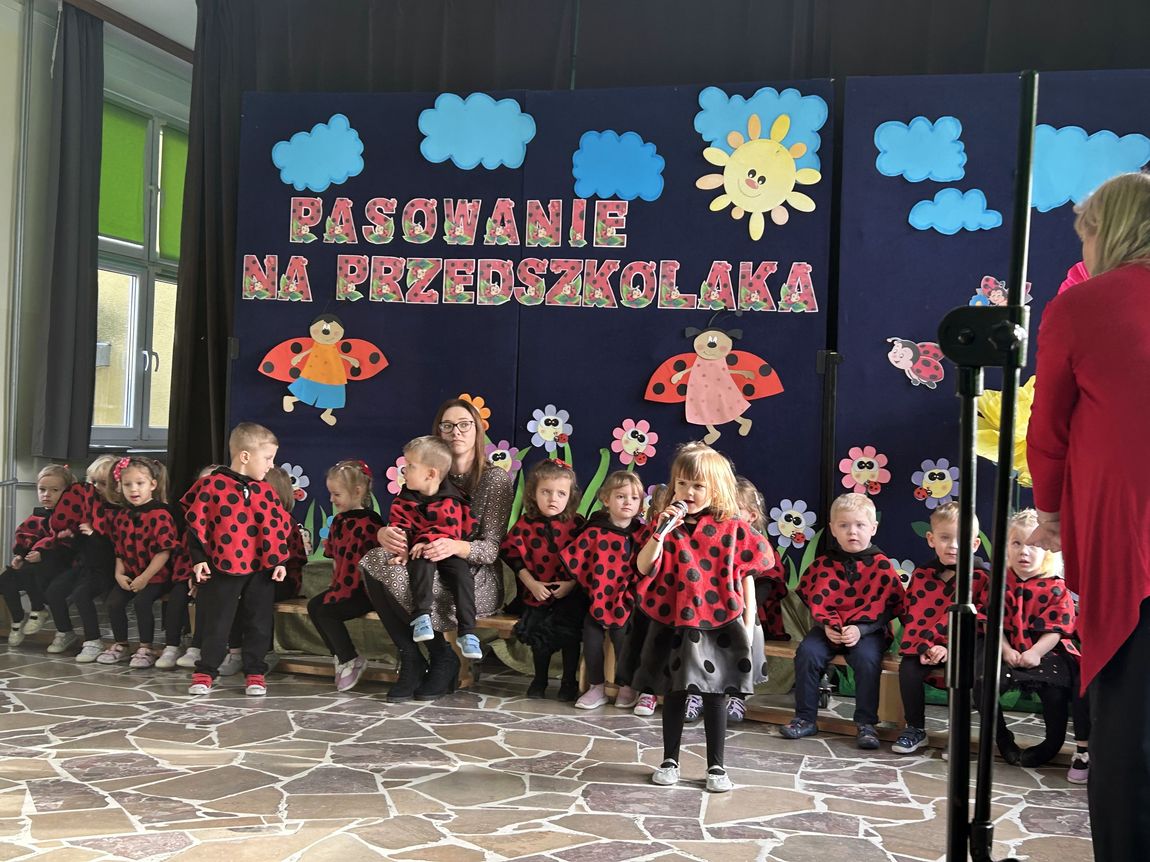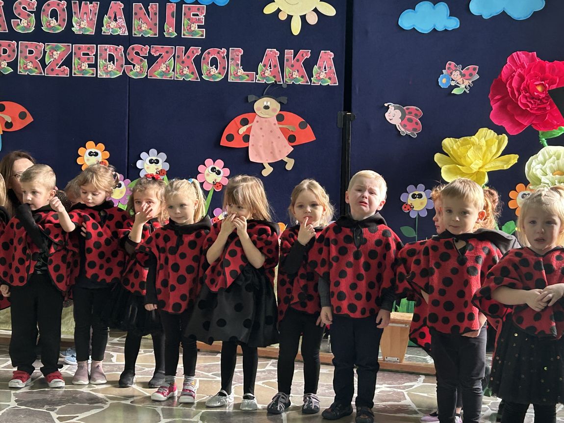 Dnia 14 listopada w naszej grupie „Biedronki” odbyła się uroczystość Pasowania na Przedszkolaka. Dzieci zaprezentowały krótki program artystyczny – zaśpiewały piosenki oraz powiedziały wierszyki, pokazując, jak dobrze czują się w przedszkolu. Następnie każde dziecko zostało uroczyście pasowane przez panią dyrektor symbolicznym piórem i otrzymało pamiątkowy dyplom oraz drobny upominek.
