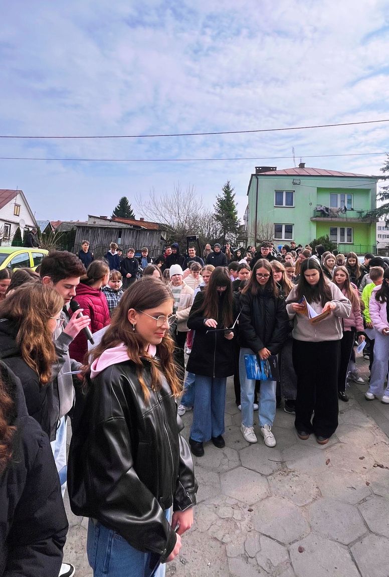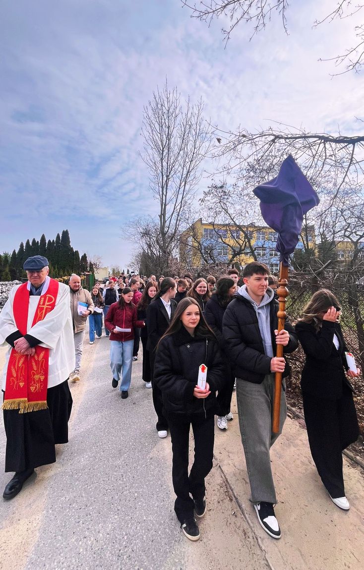 30 marca 2026 roku uczniowie naszej szkoły wzięli udział w wyjątkowym wydarzeniu duchowym – Drodze Krzyżowej, która przeszła ulicami naszego miasta. Była to plenerowa Droga Krzyżowa, pozwalająca uczestnikom na głębsze przeżycie tego nabożeństwa poprzez wspólne rozważanie stacji w przestrzeni publicznej.