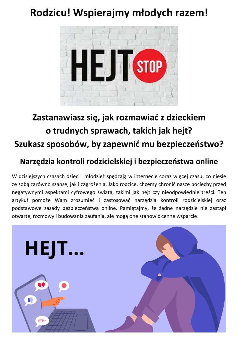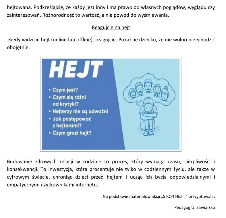 • „Nie hejtuj!” – spotkanie z p. Kingą Zawodnik