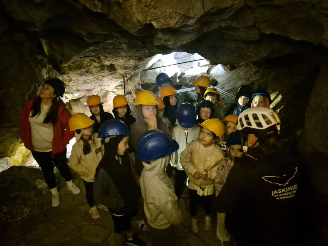 Drugiego dnia zwiedziliśmy zamek w Chęcinach, wspięliśmy się na wieżę widokową, skąd rozciągały się przepiękne widoki, oraz mieliśmy okazję przymierzyć stroje rycerskie, co sprawiło wszystkim ogromną frajdę. Następnie udaliśmy się do Kielc, gdzie zeszliśmy pod ziemię, by zwiedzić fascynującą jaskinię i poznać sekrety geologii regionu.